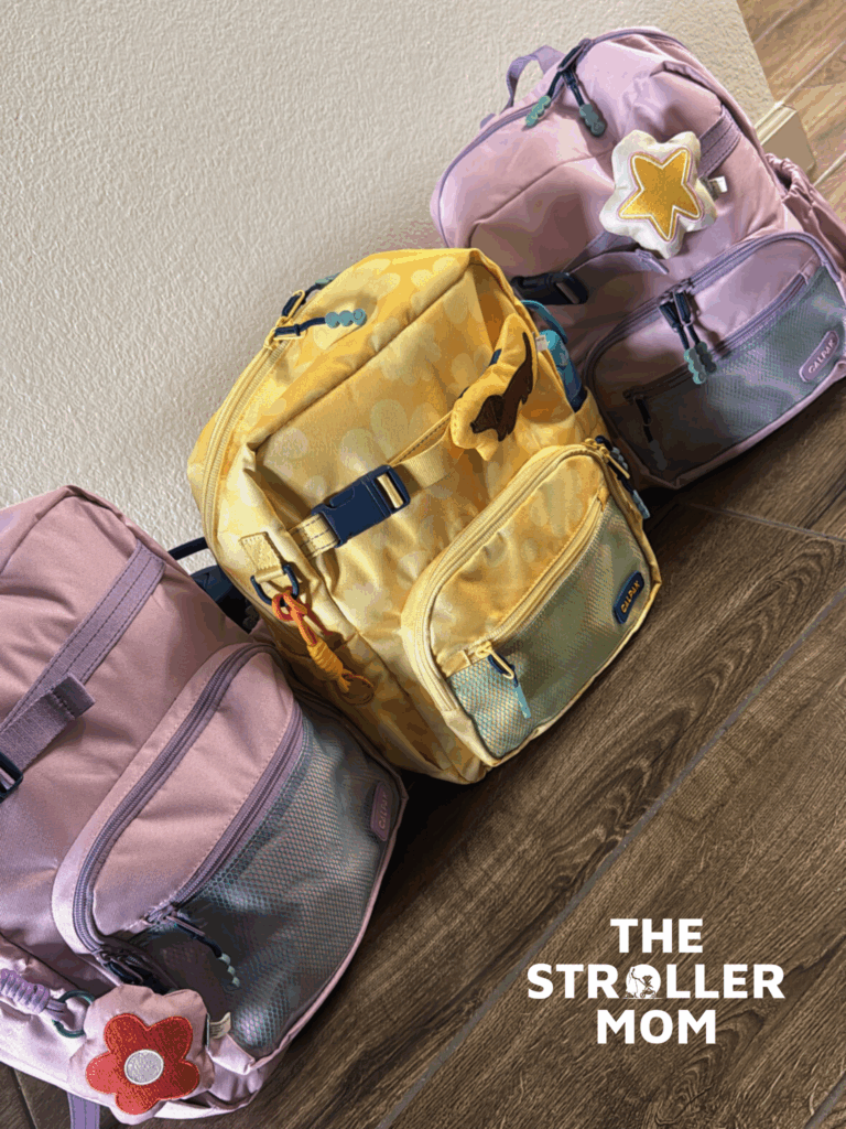 This year, we got all the girls’ backpacks from Calpack’s new kid collection (use code Emily10 + link to save). I love that each bag can be customized with an adorable plush charm, and the girls had a blast picking out their favorites. We got our lunch boxes from Target.