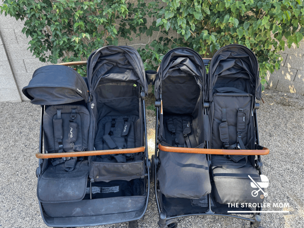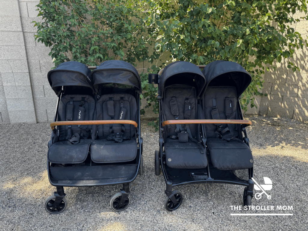 The Nuna TRVL Dubl and Bombi Twin are both amazing side-by-side double strollers, but come at very different price points!